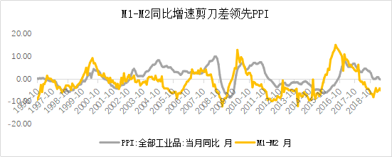 历史上,M1-M2剪刀差与PPI增速具有很好的相关性