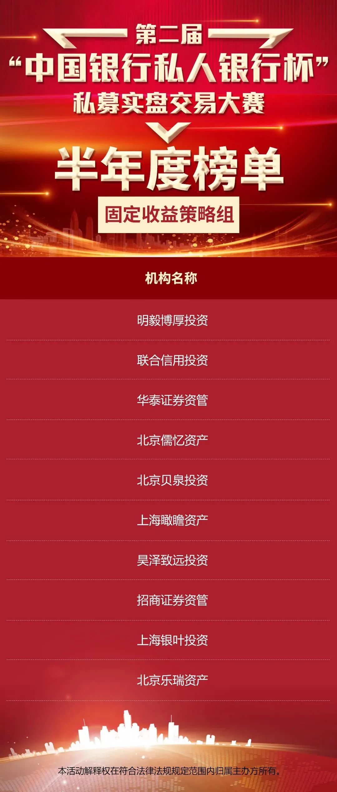 明毅荣誉||明毅博厚投资荣登第二届中国银行私人银行杯半年度榜单固定收益策略组第一名