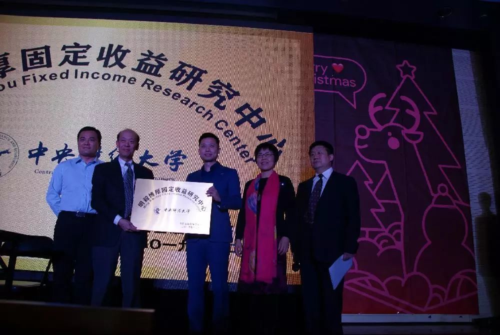 2019年12月18日,中央财经大学中国金融发展研究院明毅博厚固定收益研究中心成立暨捐赠签约仪式在学术会堂402举行,学校及学院领导,明毅博厚投资有限公司董事长、总经理出席揭牌仪式,并为“明毅博厚-CAFD杰出校友杯”论文大赛优胜者颁奖。